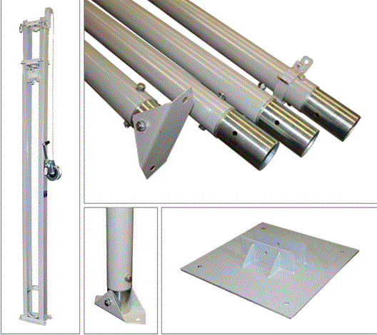 Мачты составные алюминиевые серии МС-А модель МС-А-10 состоят из секций, изготовленных из круглых алюминиевых труб 2м длиной одинакового диаметра и толщиной стенки (50х2 мм) из сплава 6060 Т6 - европейский аналог EN AW 6060, с фиксацией мест соединений резьбовым методом. Цвет отличный от "серый металлик" (RAL 9006) + 12% к цене мачты. Максимальная допустимая нагрузка для данной модели составляет 10 кг.